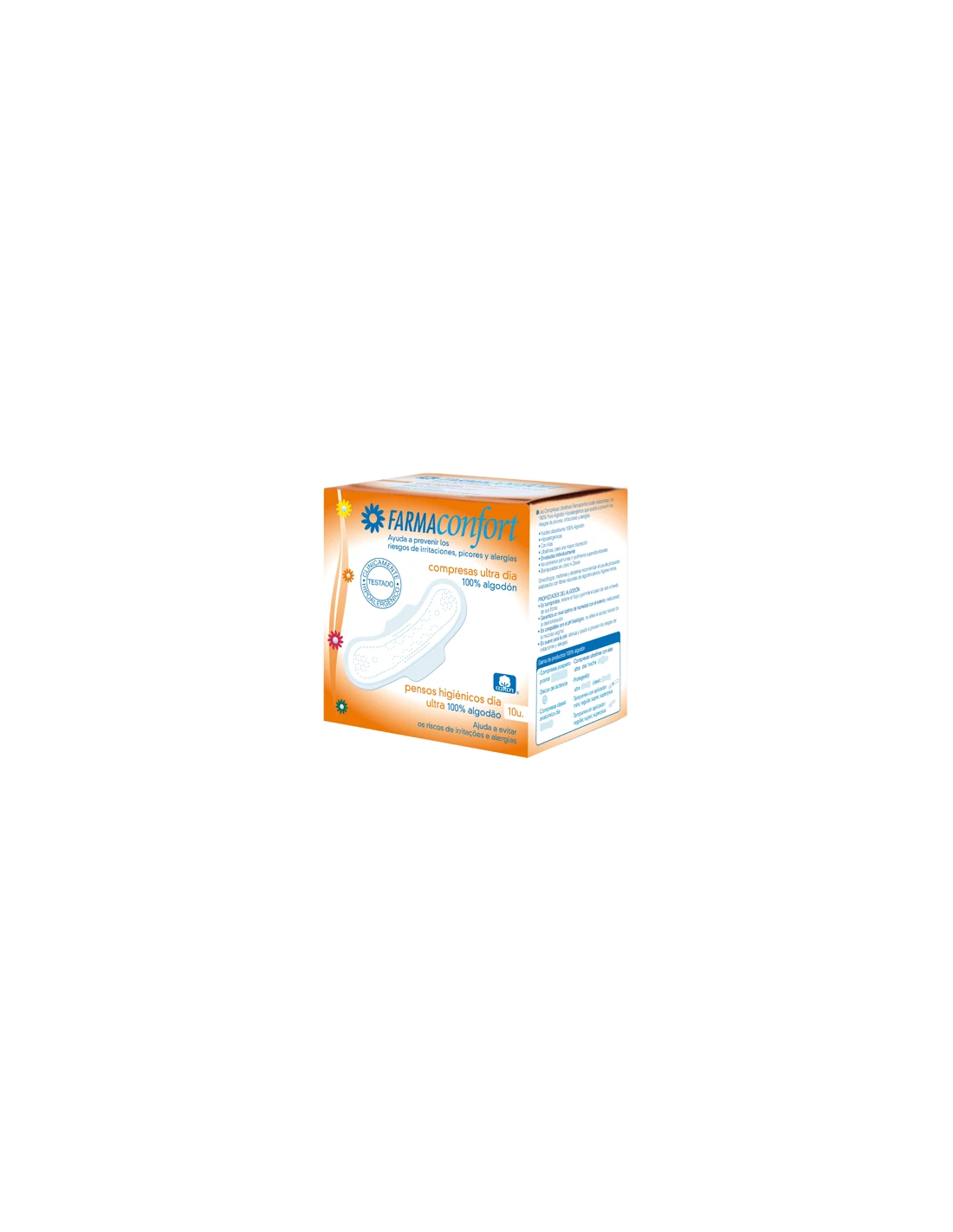 COMPRESAS 100% ALGODON FARMACONFORT ULTRAFINAS 10 UNIDADES DIA