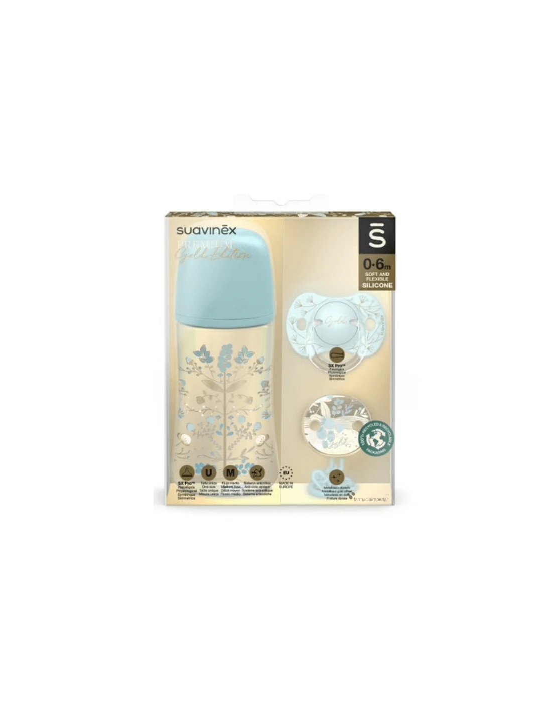 Suavinex SET GOLD BIBERON + CHUPETE + BROCHE